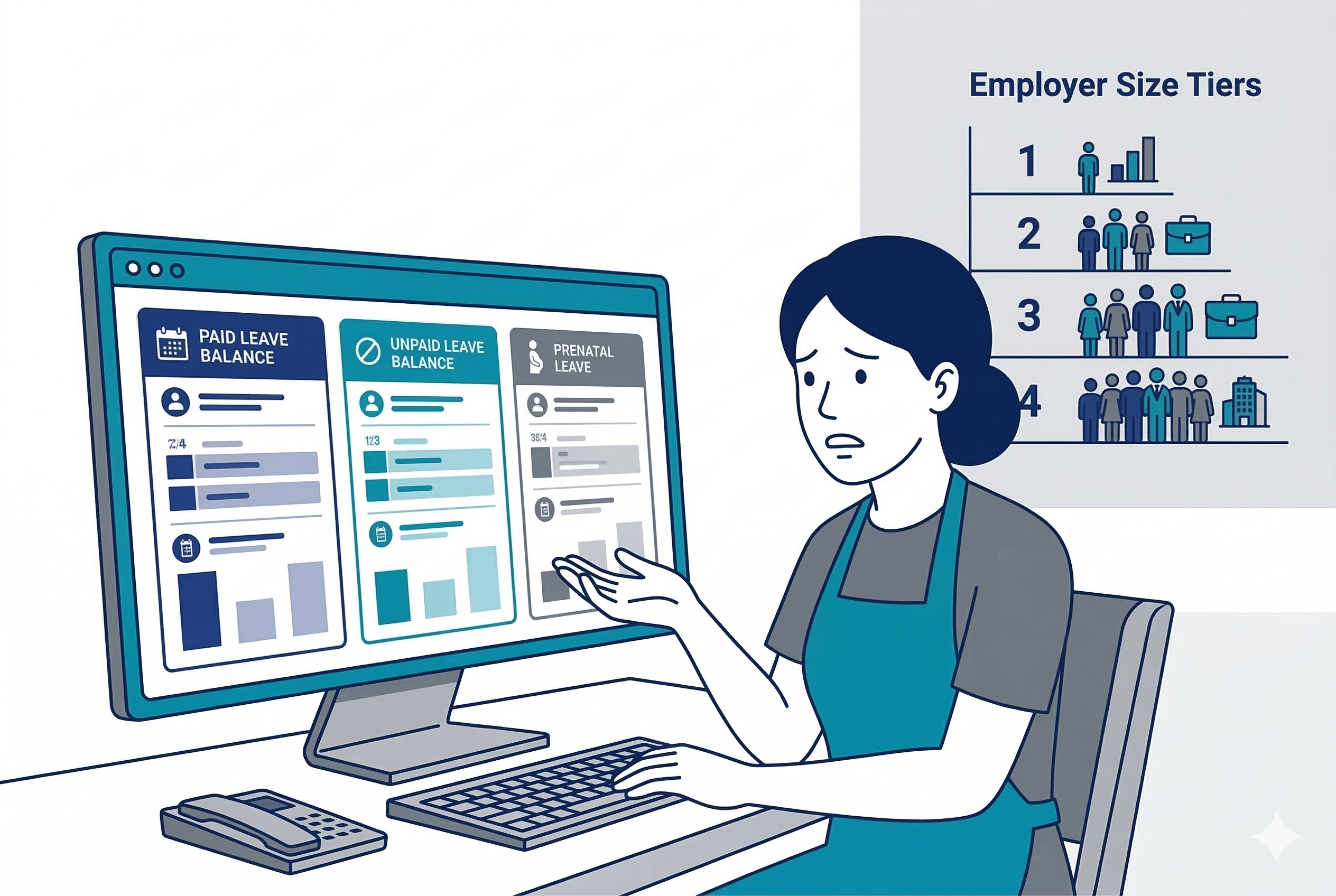 Later, Maria becomes pregnant. She has 20 hours of paid prenatal leave available, separate from everything else. Total protected leave in one year: up to 92 hours.